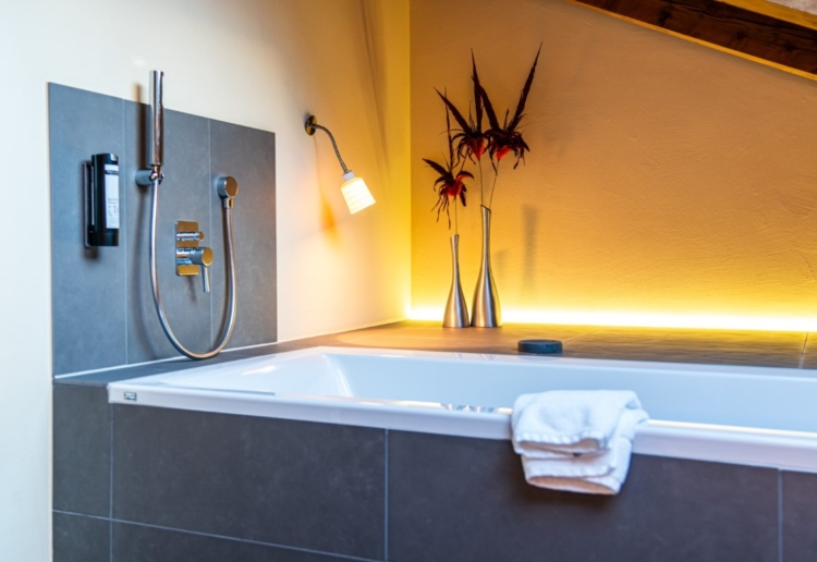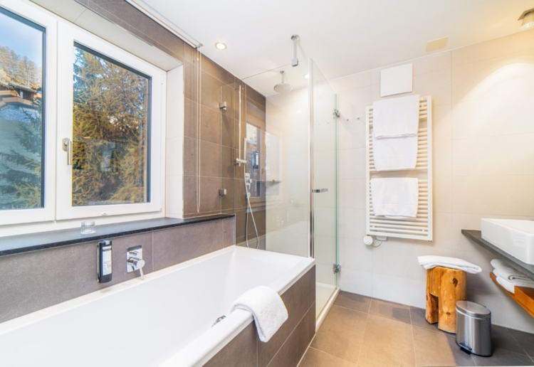 Bathroom fittings: Bathtub, walk in shower, hairdryer, magnifying mirror, separate WC with sink, bathrobes and slippers